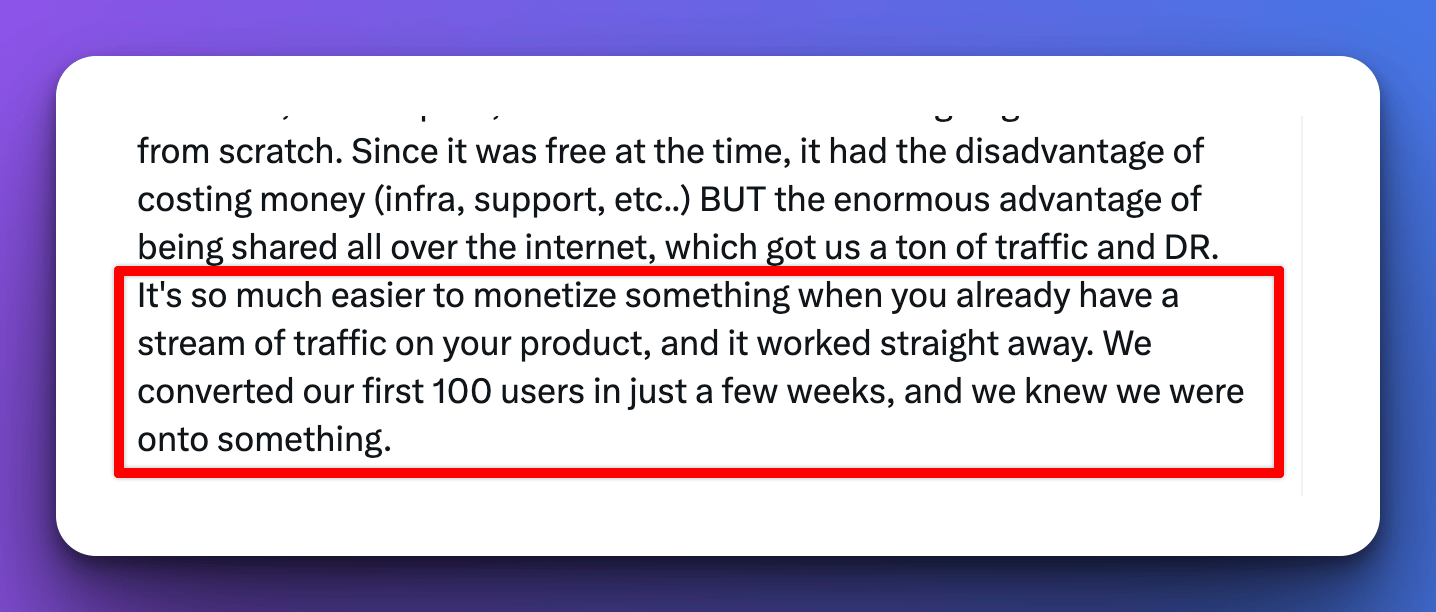 And that helped them get their first 100 users in just a few weeks after the new launch.