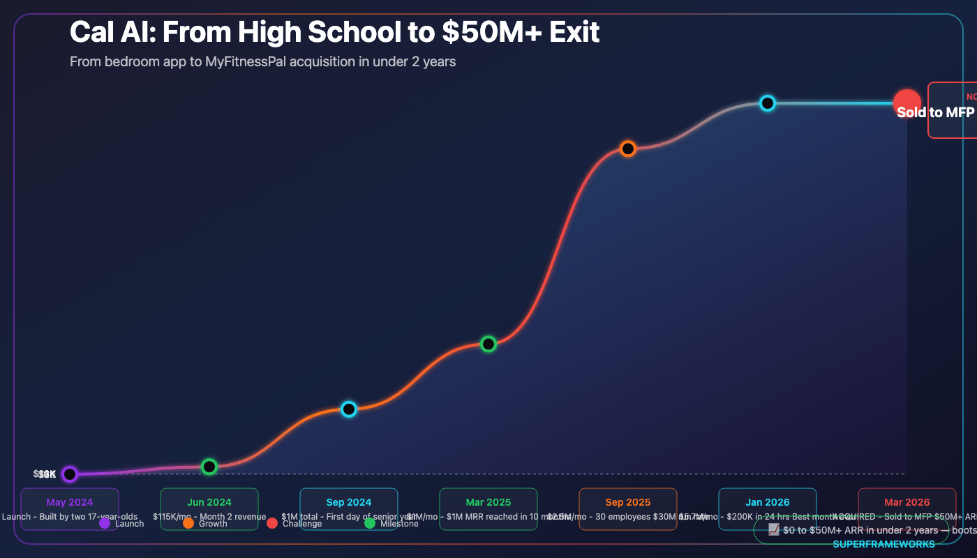 A 19-year-old built it in his parents' house, bootstrapped it to $50M+ ARR, and sold it to MyFitnessPal.