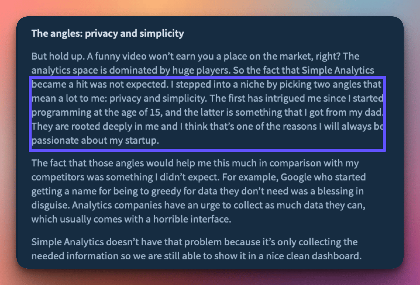 I have done a detailed breakdown of Simple Analytics SEO strategy inside the Indie Masterminds community.