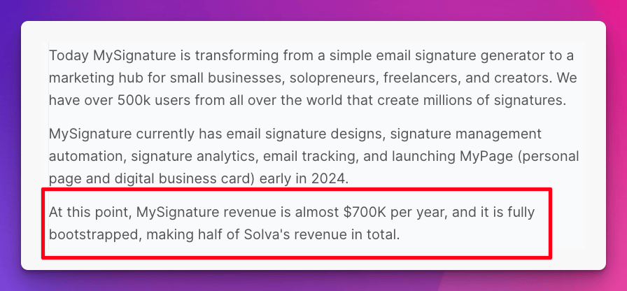 MySignature is an email signature generating tool that does $700K annual recurring revenue.