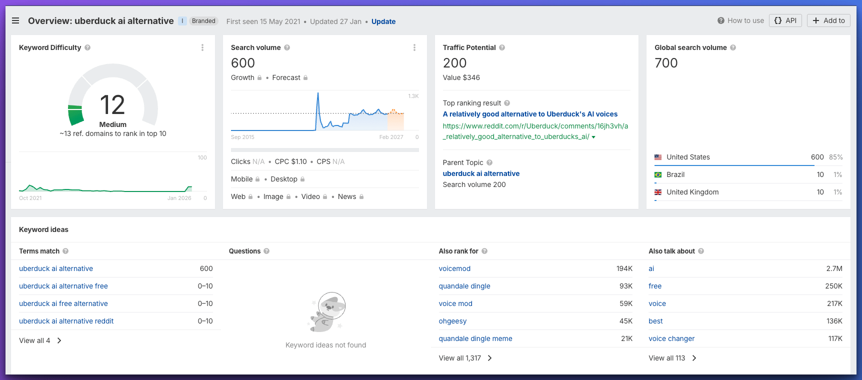 Search Volume (Global) | 700 |