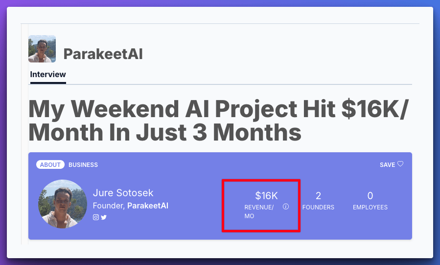 Parakeet AI is a simple job interview assistant doing $16K/month.
