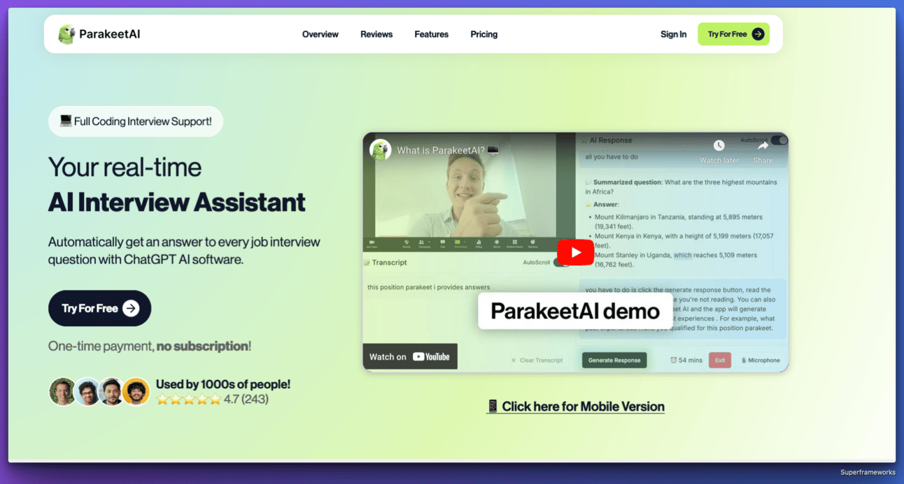 Parakeet AI is a job interview assistant.
